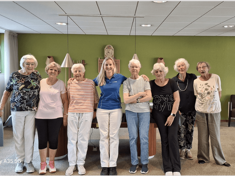 Eind juli heeft Anne Kluivers voor de laatste keer op dinsdag les gegeven aan de gezellige gymgroep in de Rossini Flat.